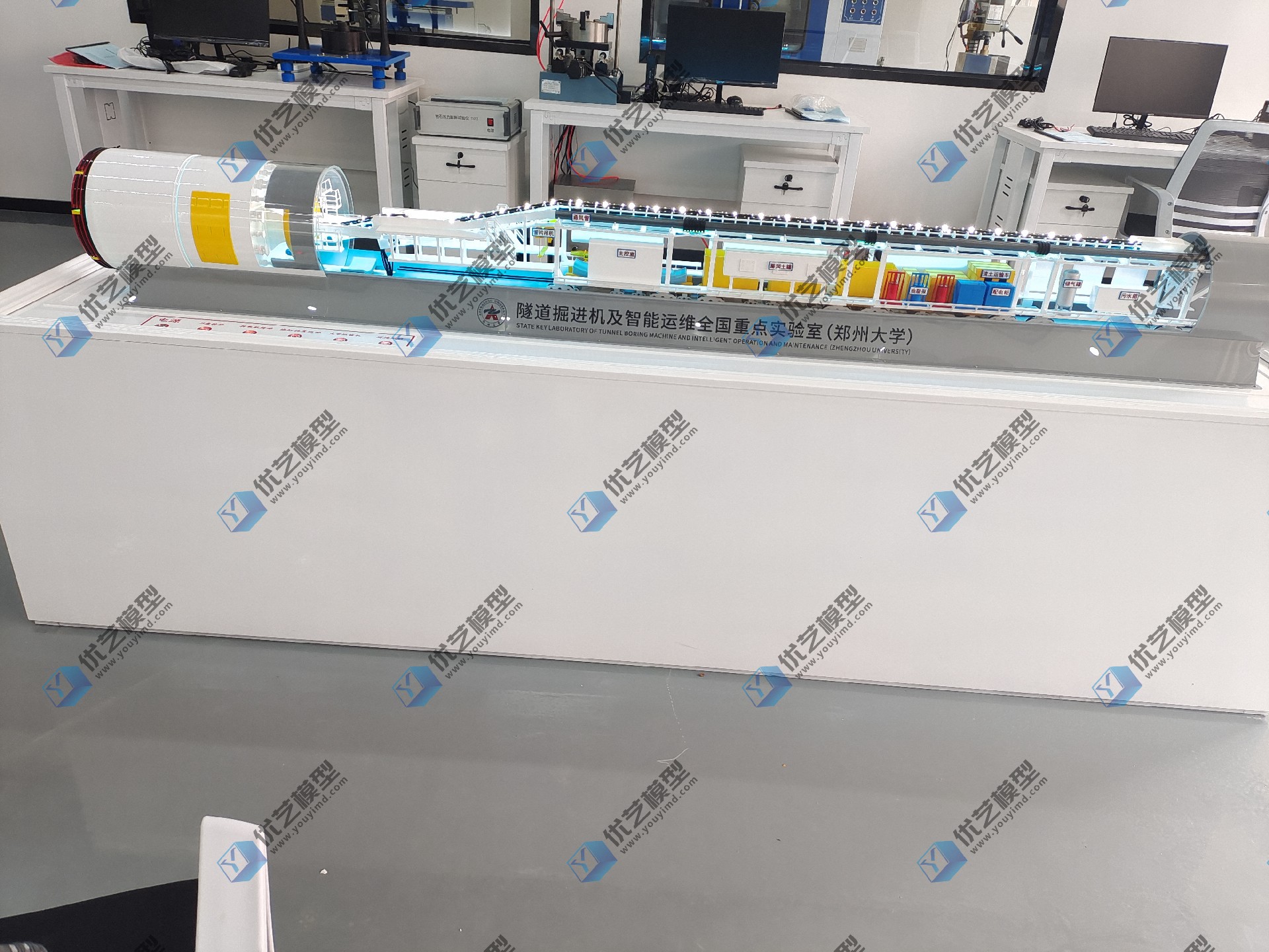 TBM盾構機教學模型是湖南省優藝模型與鄭州大學合作研發制作的,旨在為教育和專業培訓提供高質量的教具資源。