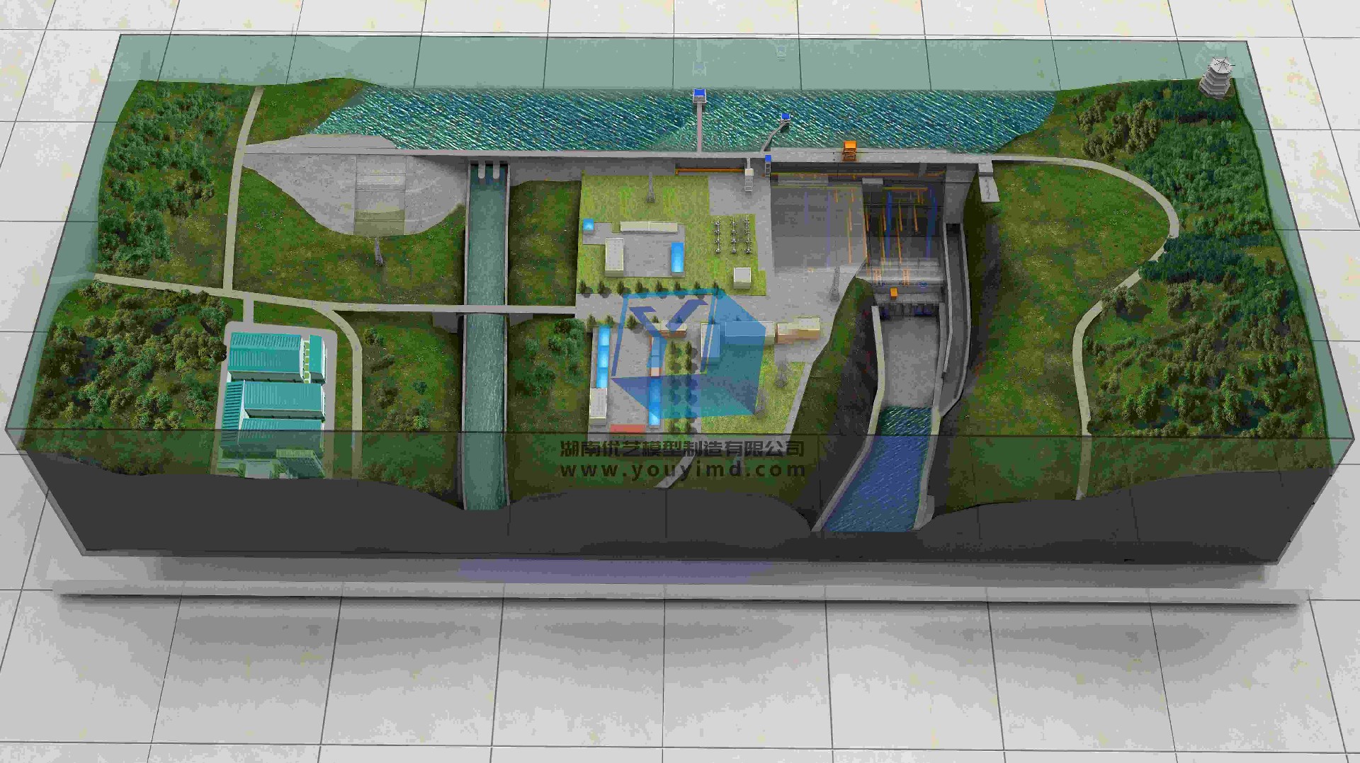 模型操作:采用傳統控制開關,控制廊道燈光演示,水輪機動態演示,閘門動態演示。