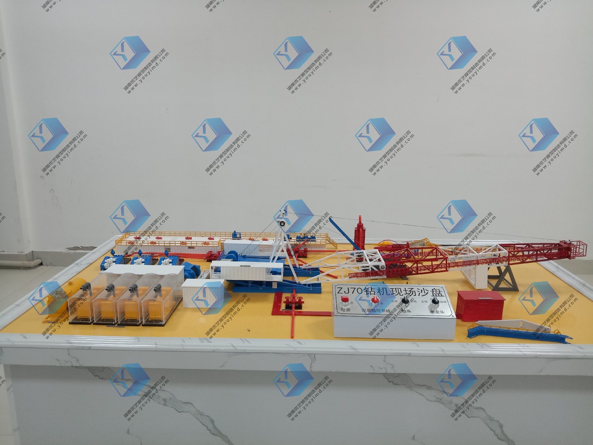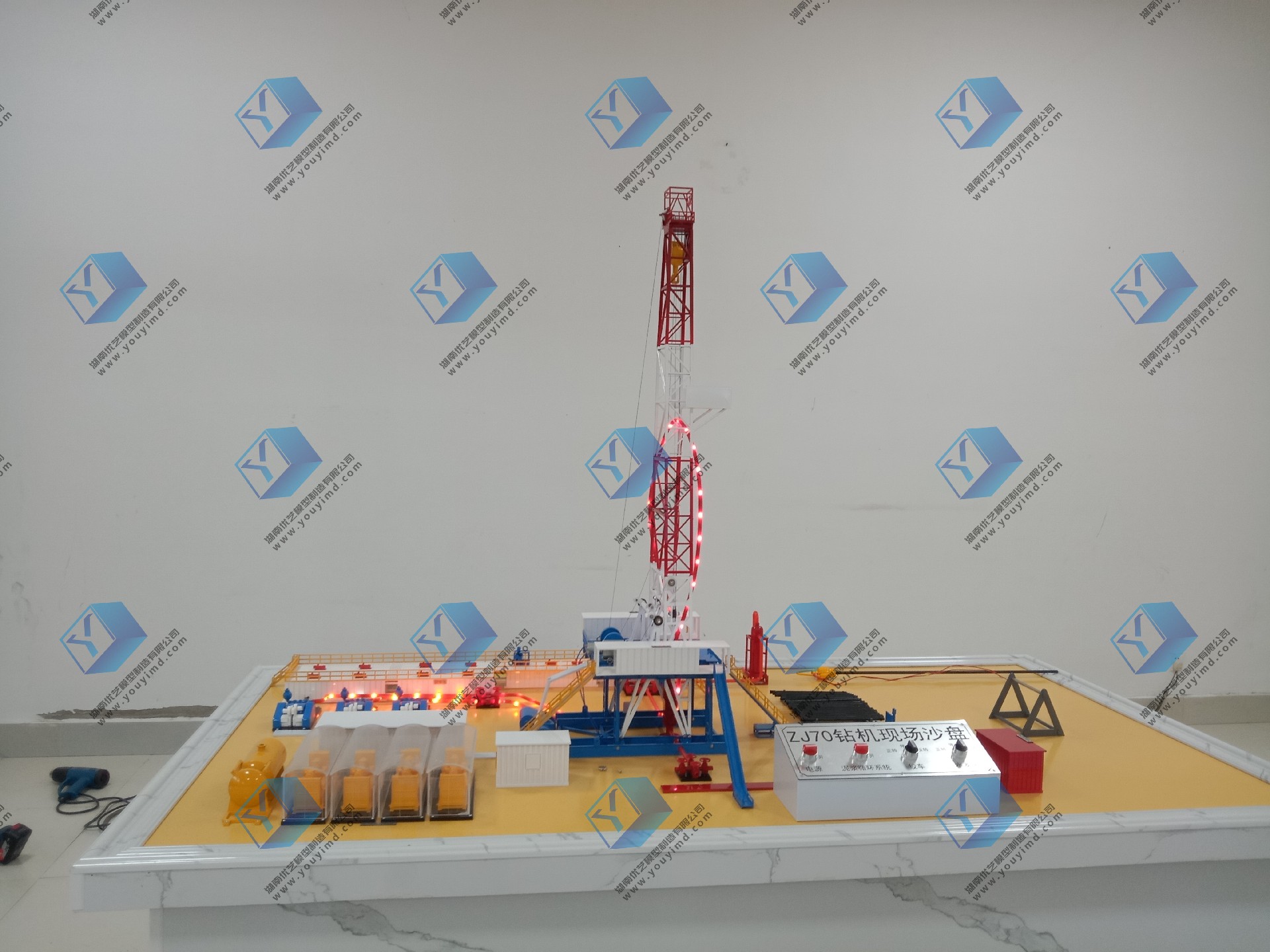 湖南省優(yōu)藝模型生產(chǎn)的ZJ70D鉆機(jī)模型該模型為金屬材質(zhì),可實(shí)現(xiàn)井架與平臺的自動啟升,模型由:天車、井架、油車、頂驅(qū)、絞車、防噴氣組、壓井管會、柴油發(fā)電機(jī)組、配電房、振動篩、除砂除泥器、節(jié)流管會、攪拌器、泥漿池、泥漿泵、清水罐等部分組成。仿真性極高,以該模型作為輔助工具,適用于各大院校的結(jié)構(gòu)原理認(rèn)知性教學(xué),各大石油培訓(xùn)中心為員工進(jìn)行上崗培訓(xùn)安全注意事項(xiàng)的演示等