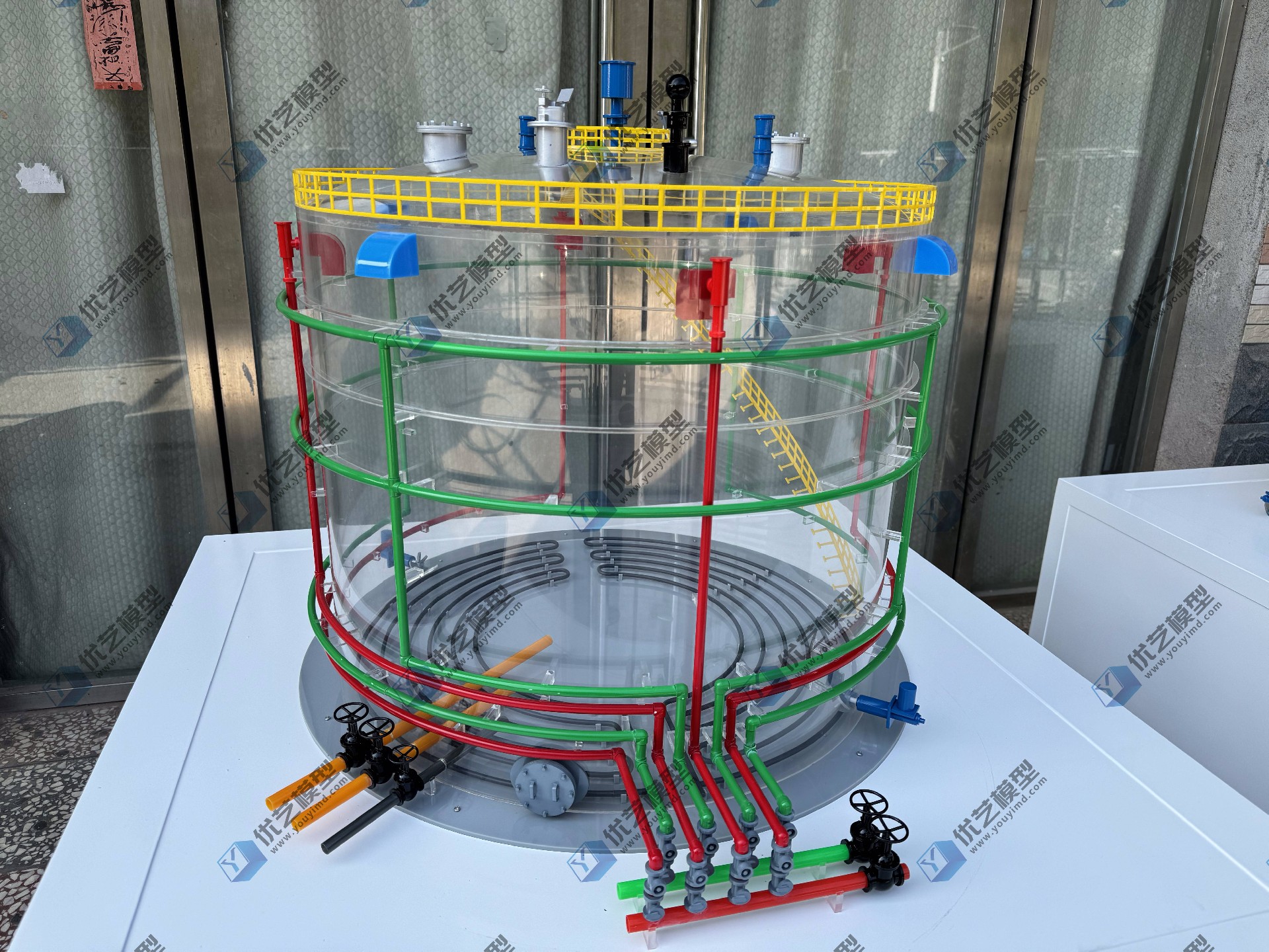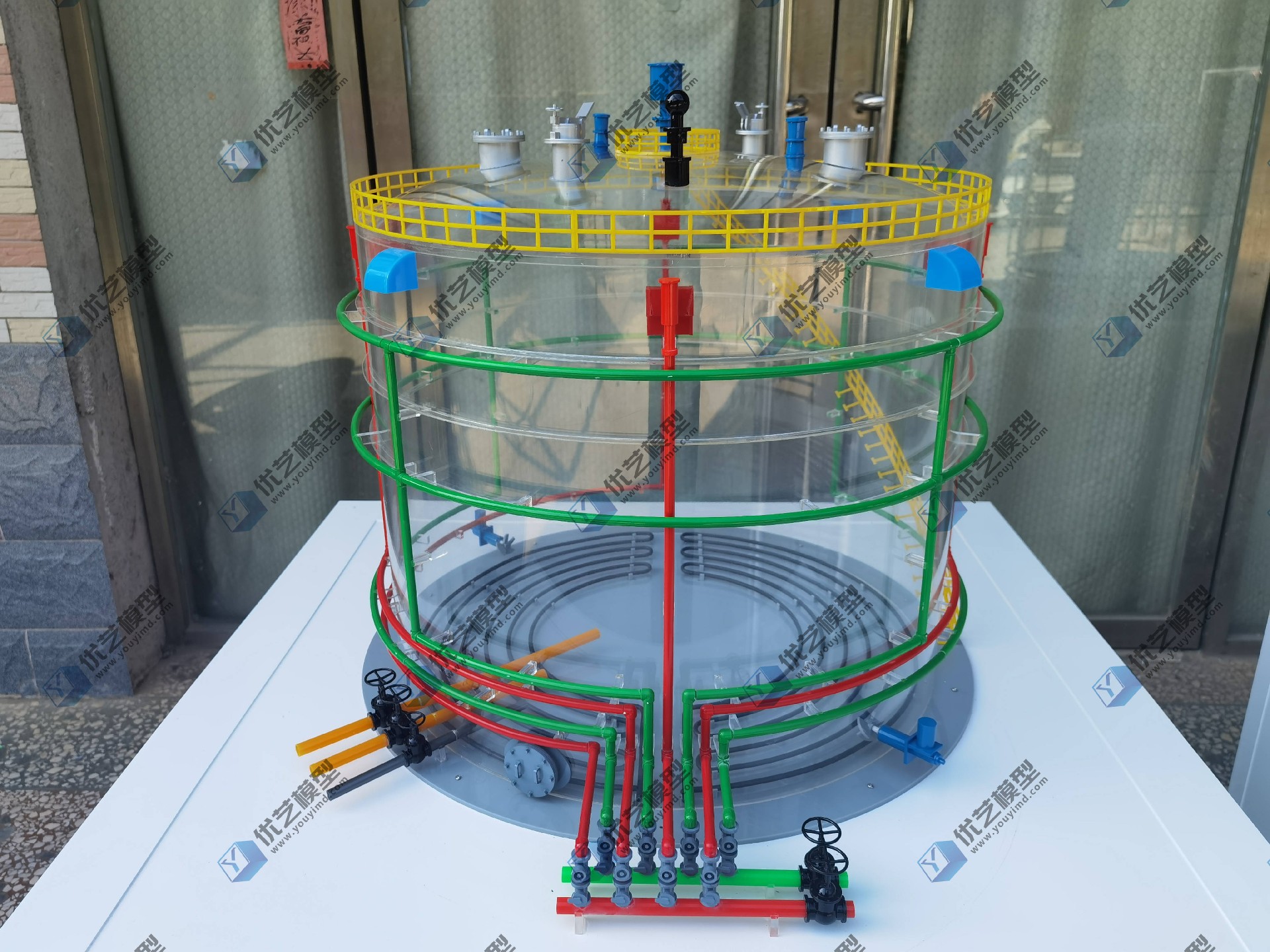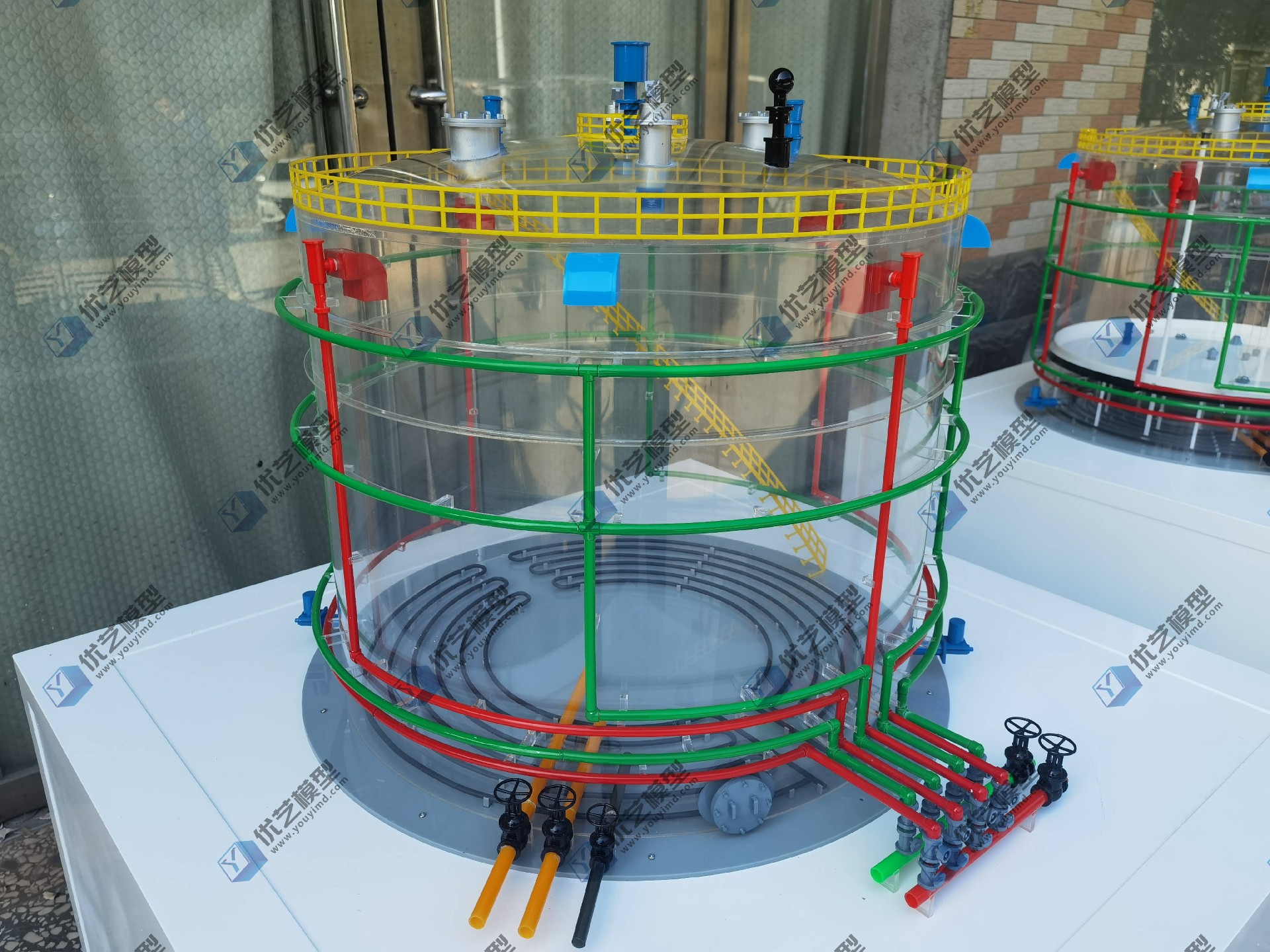 拱頂罐動(dòng)態(tài)仿真實(shí)訓(xùn)設(shè)備以常見(jiàn)拱頂罐(可根據(jù)業(yè)主指定型號(hào)定制)為原型按比例制作,整體采用透明結(jié)構(gòu),主要功能為通過(guò)透明結(jié)構(gòu)與部件外形,可直觀了解拱頂罐的結(jié)構(gòu)組成