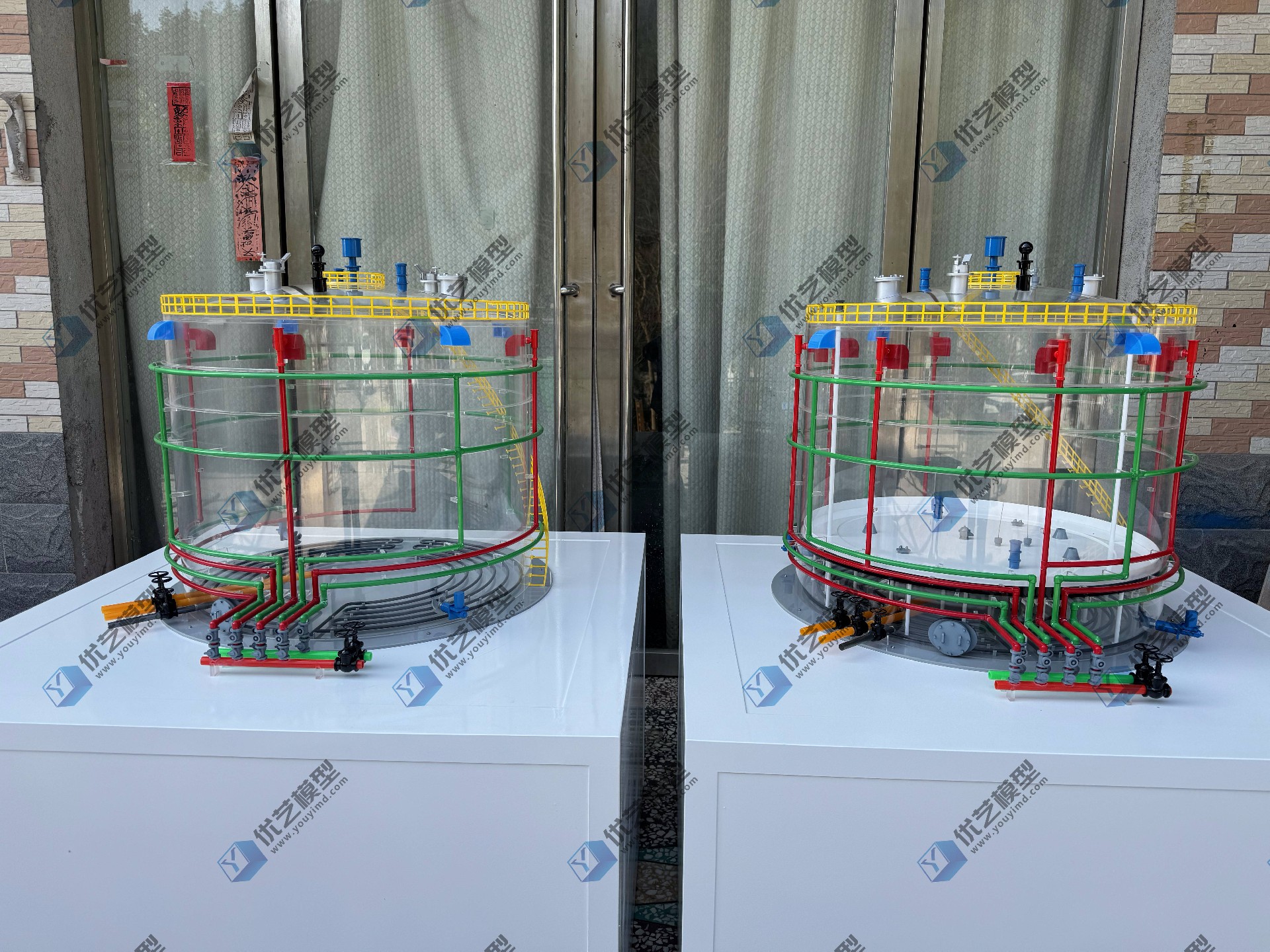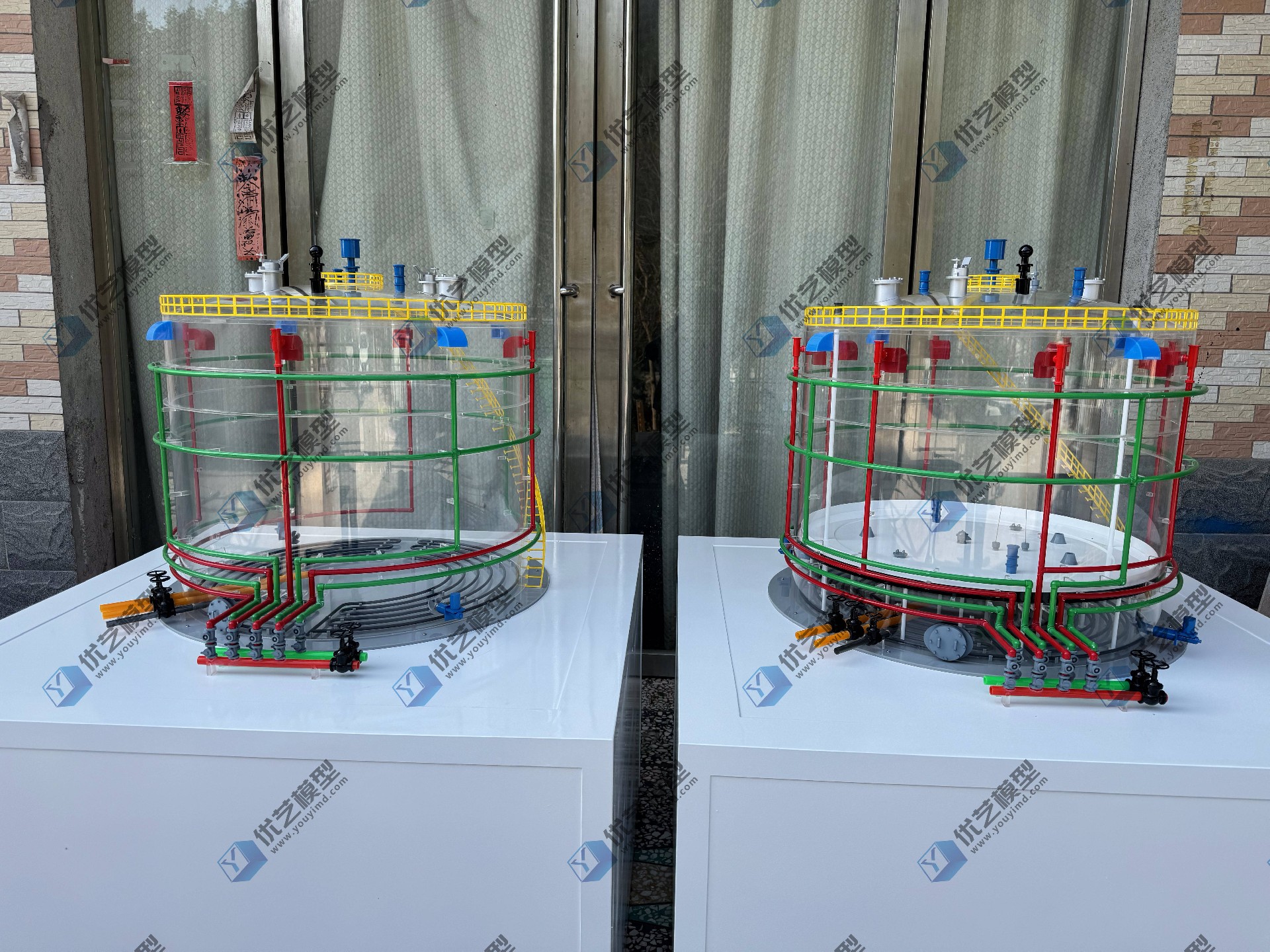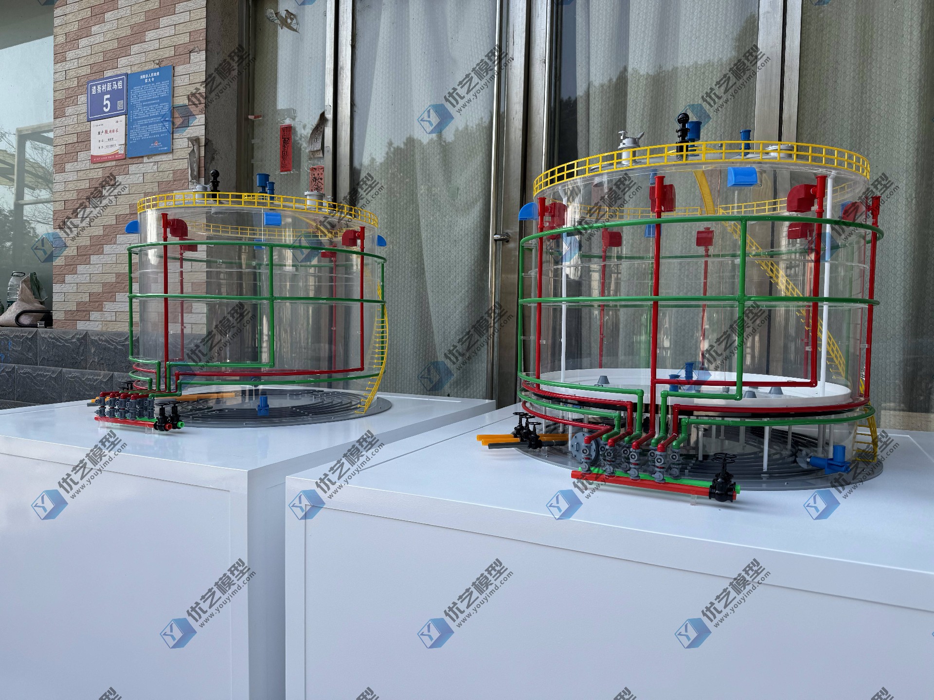 拱頂罐動(dòng)態(tài)仿真實(shí)訓(xùn)設(shè)備以常見(jiàn)拱頂罐(可根據(jù)業(yè)主指定型號(hào)定制)為原型按比例制作,整體采用透明結(jié)構(gòu),主要功能為通過(guò)透明結(jié)構(gòu)與部件外形,可直觀了解拱頂罐的結(jié)構(gòu)組成