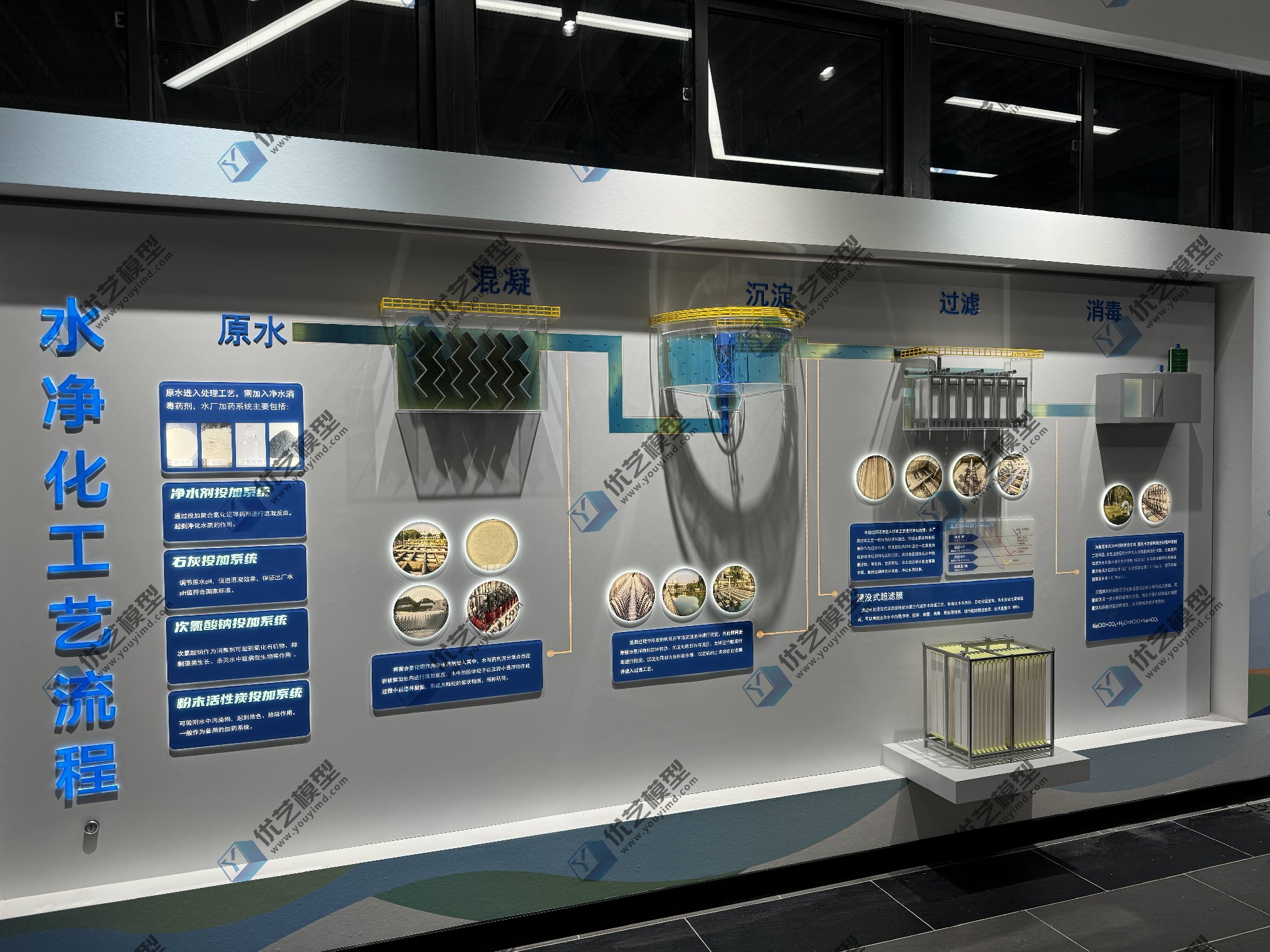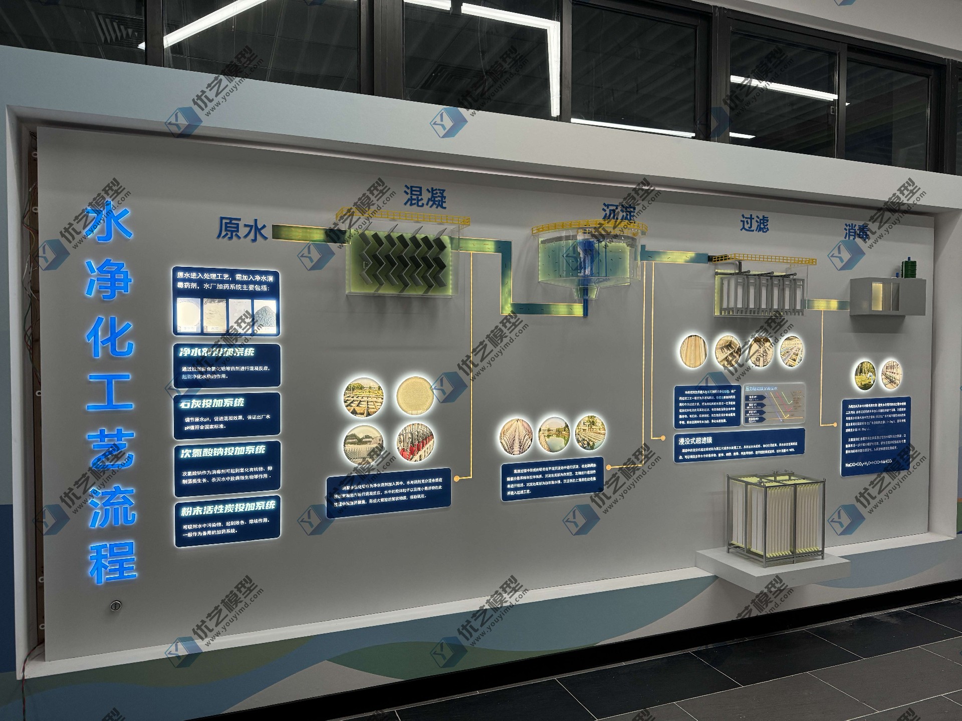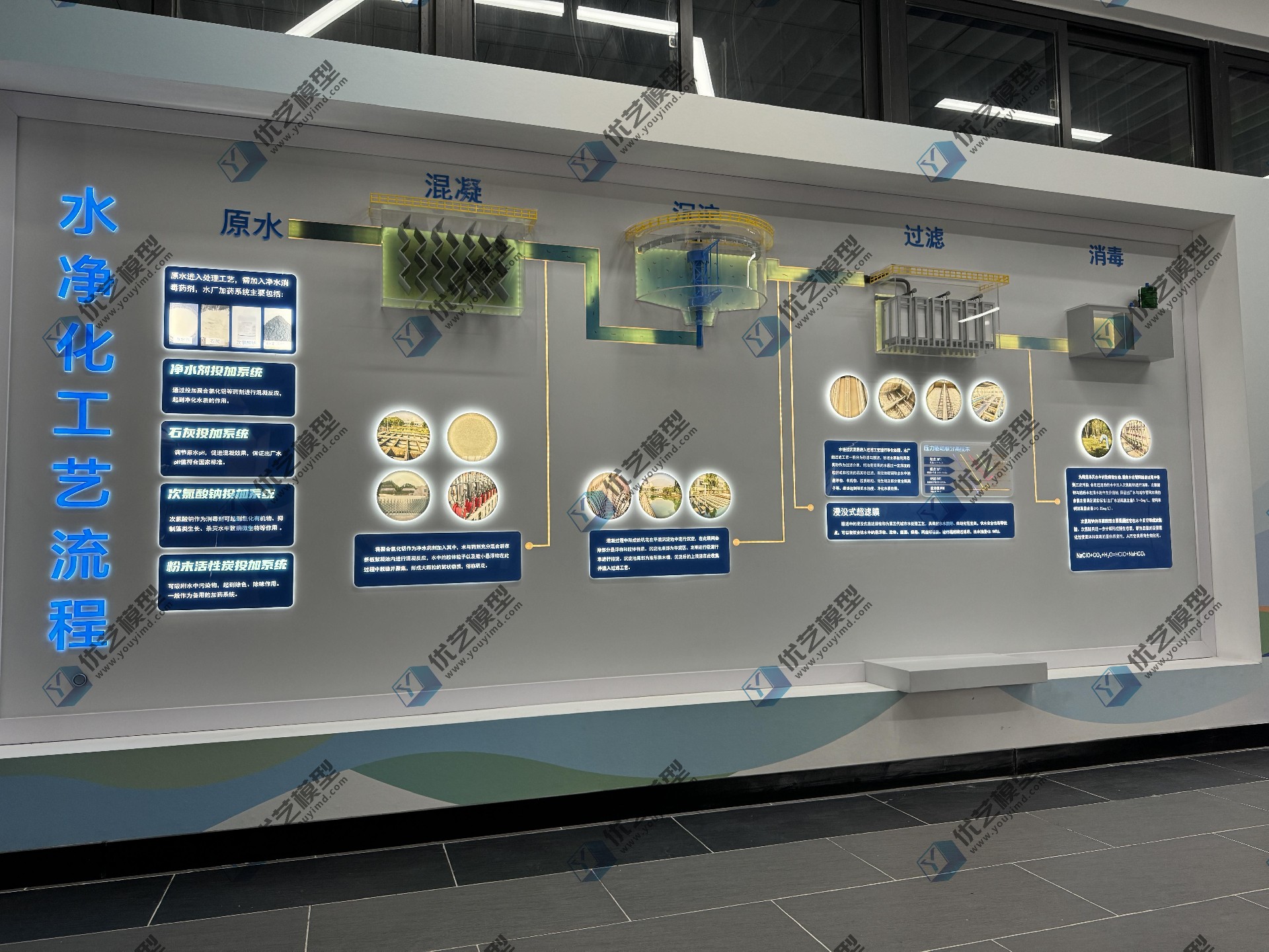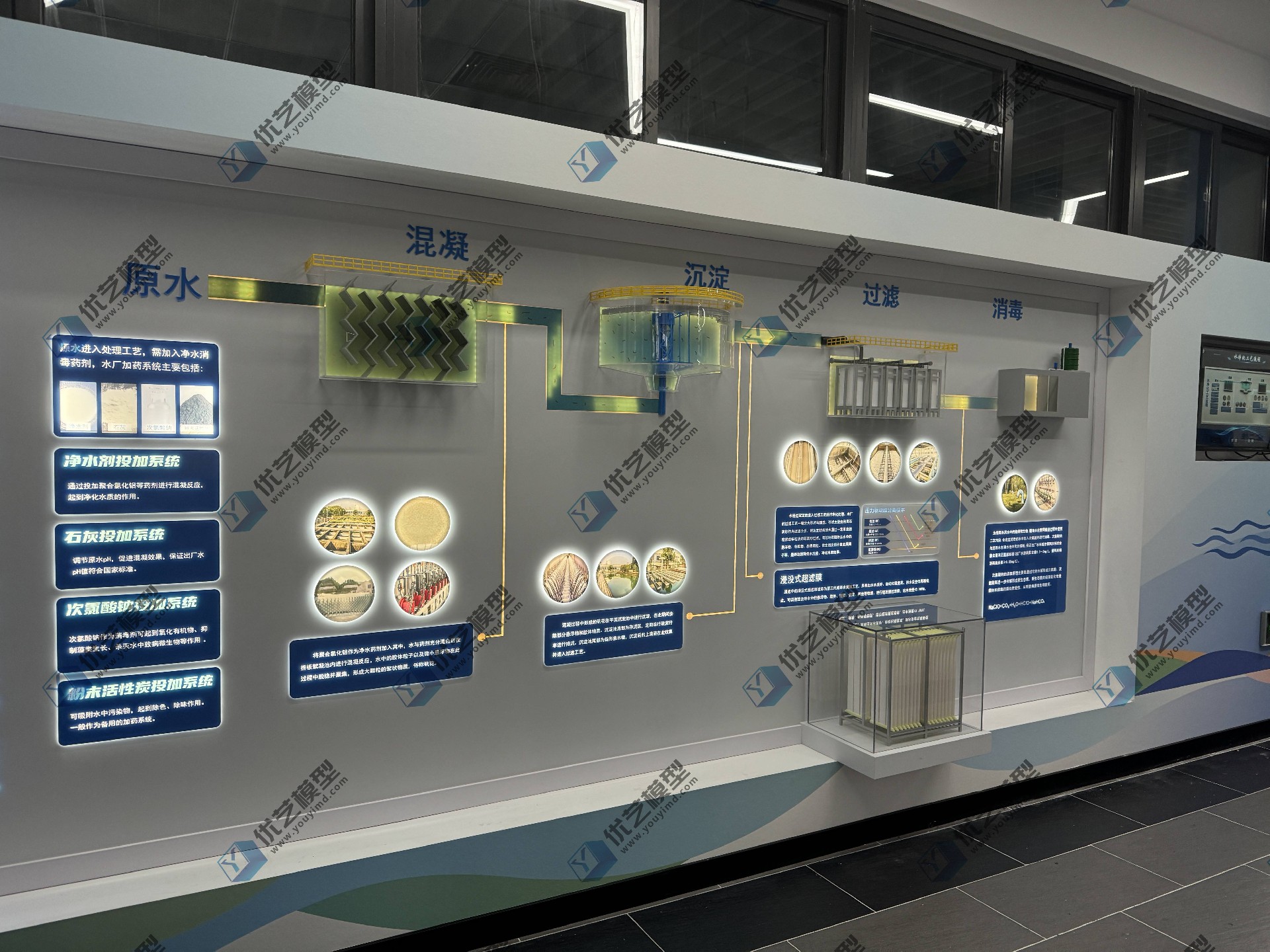 水凈化工藝流程模型,是由湖南省優(yōu)藝模型有限責(zé)任公司根據(jù)業(yè)主要求,匠心打造的專業(yè)科教裝置。模型采用3900mm超長墻面掛板設(shè)計,將混凝、沉淀、過濾、消毒四大核心工藝,以立體透明結(jié)構(gòu)全景呈現(xiàn)!每個處理池均采用高透亞克力材質(zhì),讓設(shè)備內(nèi)部構(gòu)造一目了然;創(chuàng)新配備LED流水燈動態(tài)系統(tǒng),生動模擬真實水流動線,如同親眼見證"濁水變清泉"的魔法過程。